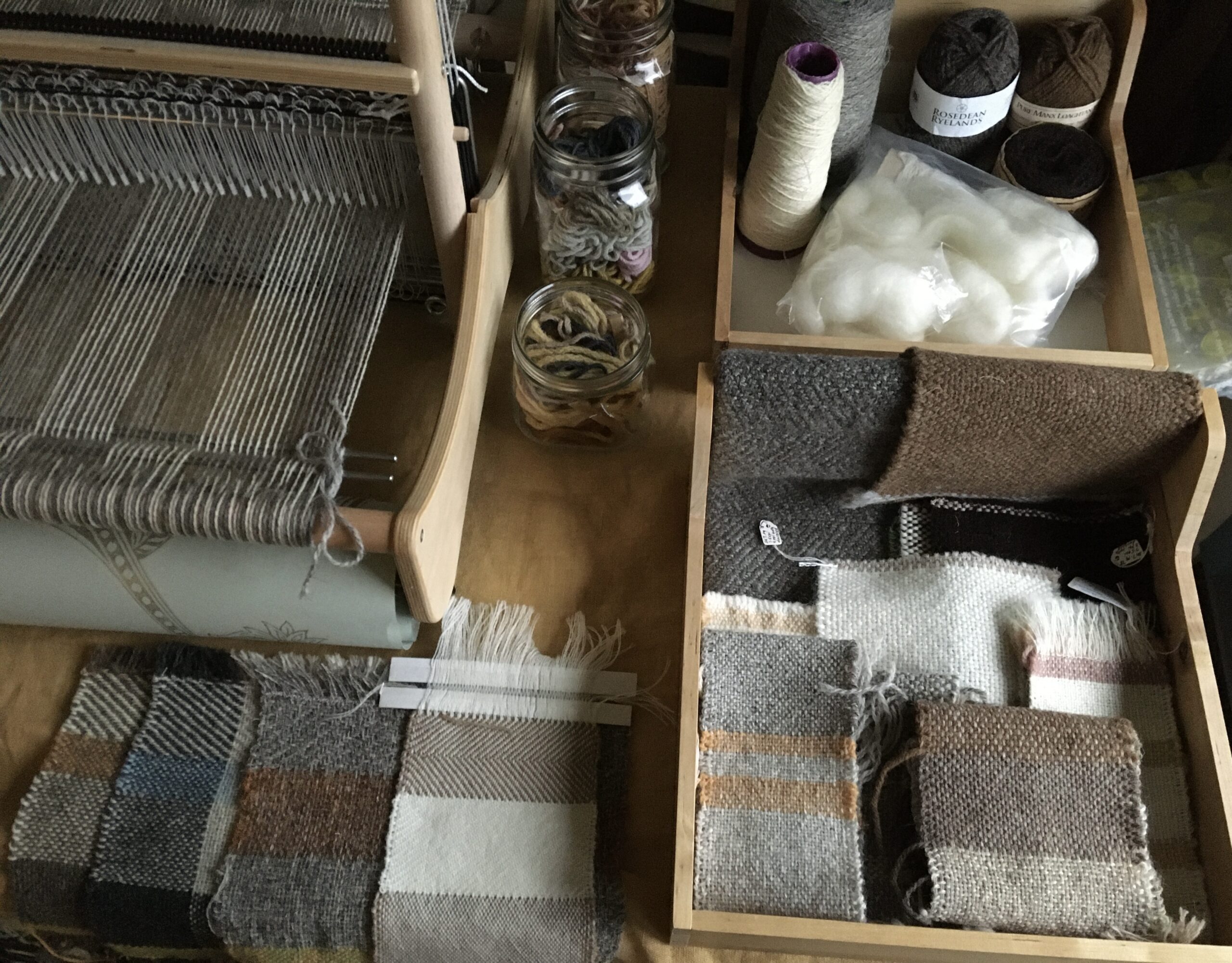 Fleece to Fabric projects with farmers and small-holders. Designing woollen fabric and products, with project management of the manufacturing process.